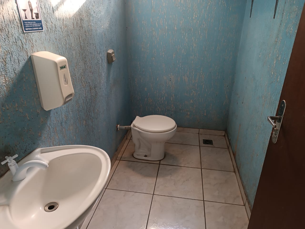 Salão comercial com balcão e pia , 01 banheiro, cozinha e estoque