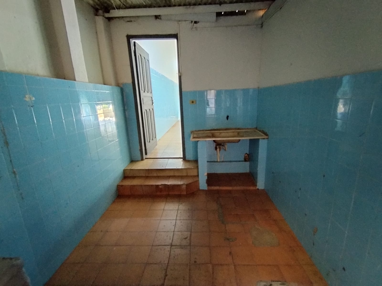 Salão comercial no centro, com cozinha e banheiro.