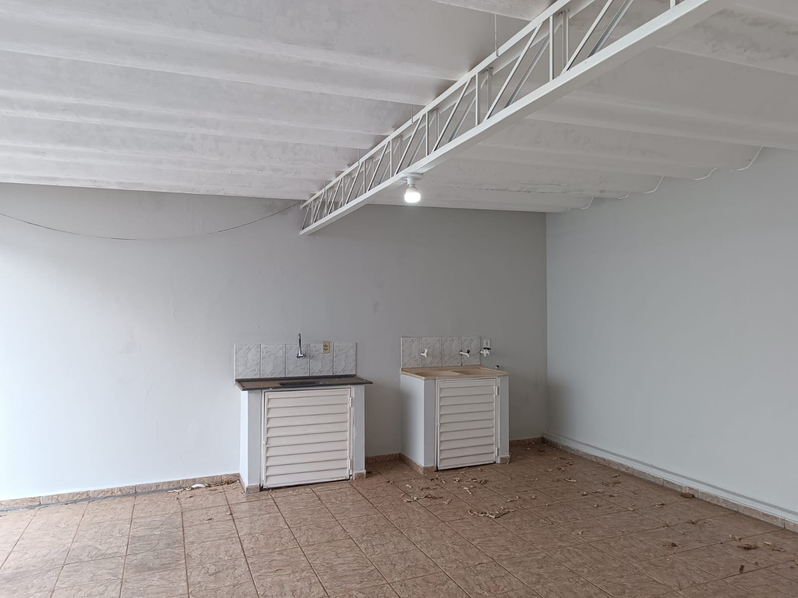 Imóvel com 02 dormitórios, sala, cozinha, banheiro, área de serviços, despejo, banheiro externo, quintal, garagem, pintura nova