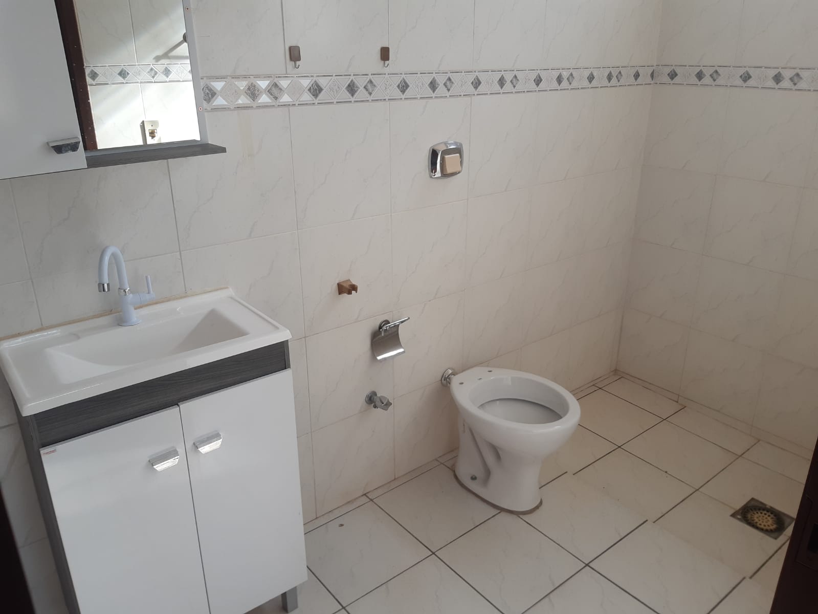 Imóvel com 02 dormitórios, sala, cozinha, banheiro, área de serviços, despejo, banheiro externo, quintal, garagem, pintura nova