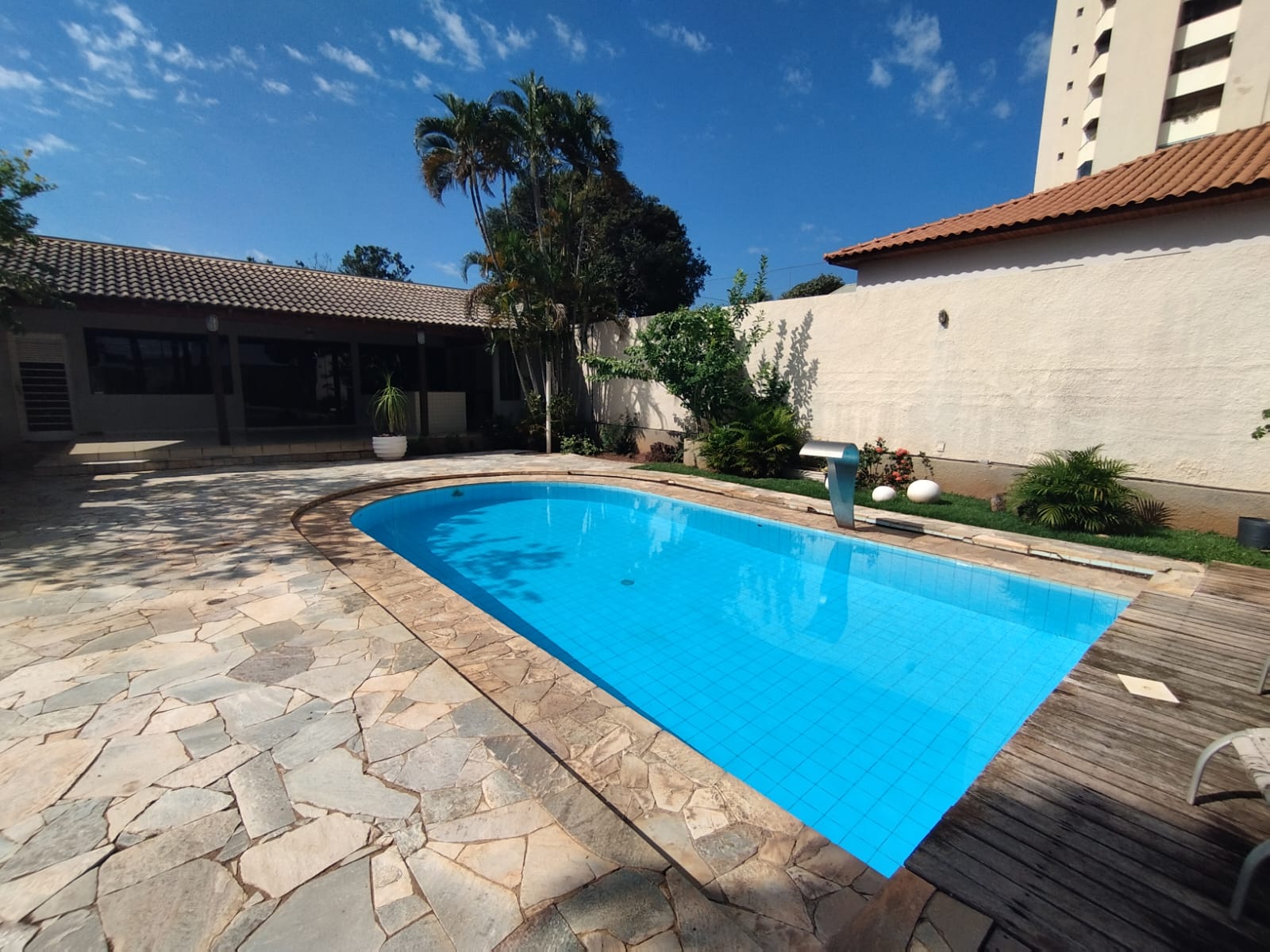 Imóvel de alto padrão, localizado na principal Avenida da cidade, conta com 04 suítes, todas com guarda roupas embutidos, sendo 01 suíte master, 02 salas, escritório, sala de jantar, lavabo, cozinha planejada, 02 apartamentos externos, despensa com banheiro, área de churrasco, sala ampla com adega, piscina, quintal e garagem para 02 carros.