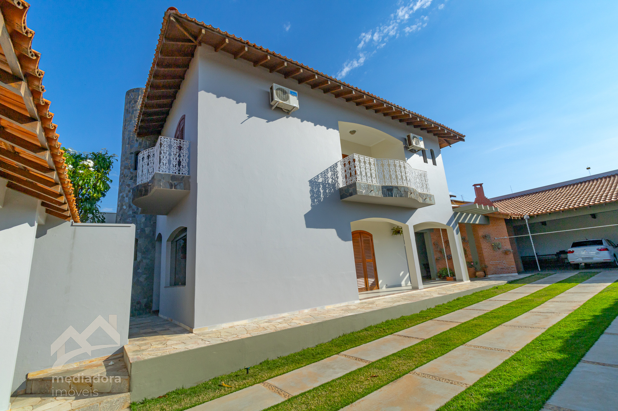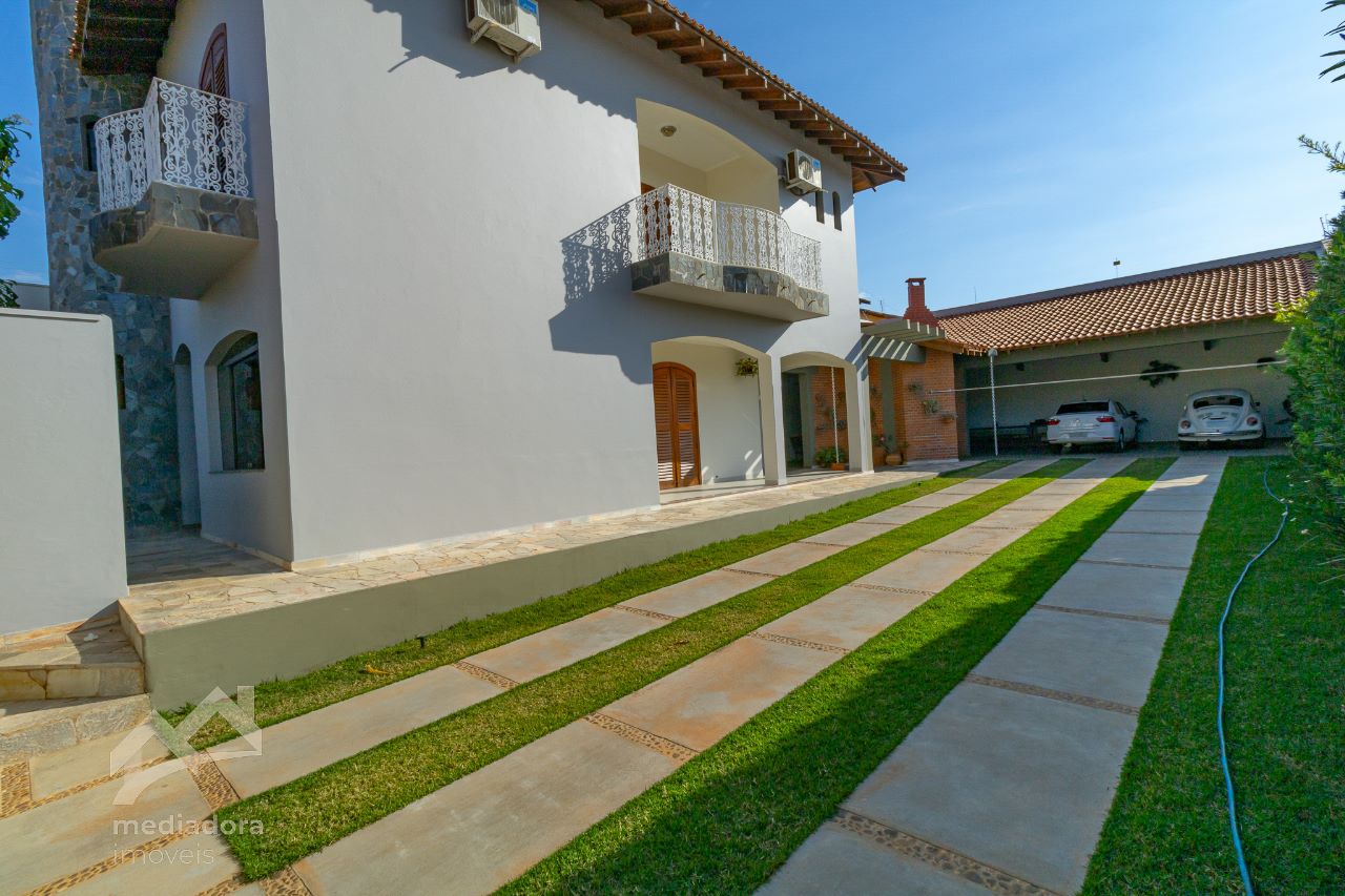 Imóvel de excelente padrão, contendo 04 quartos com ar condicionado , sendo 02 suites, 02 banheiro social,3 sala, 01sala de Tv, copa, cozinha , despensa muito boa com prateleiras, áreas de de lazer com churrasqueira bem ampla, área de serviço e quarto de despejo com prateleiras, 01 banheiro externo, garagem para 03 ou mais veículos com portão eletronico, interfone, quintal amplo.