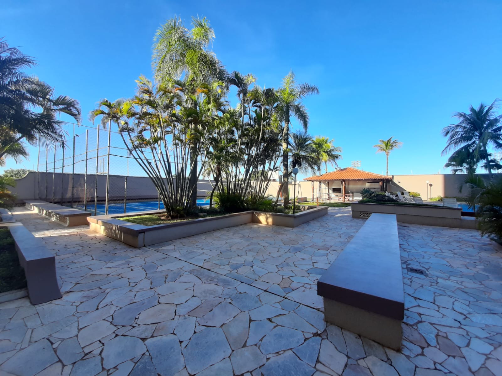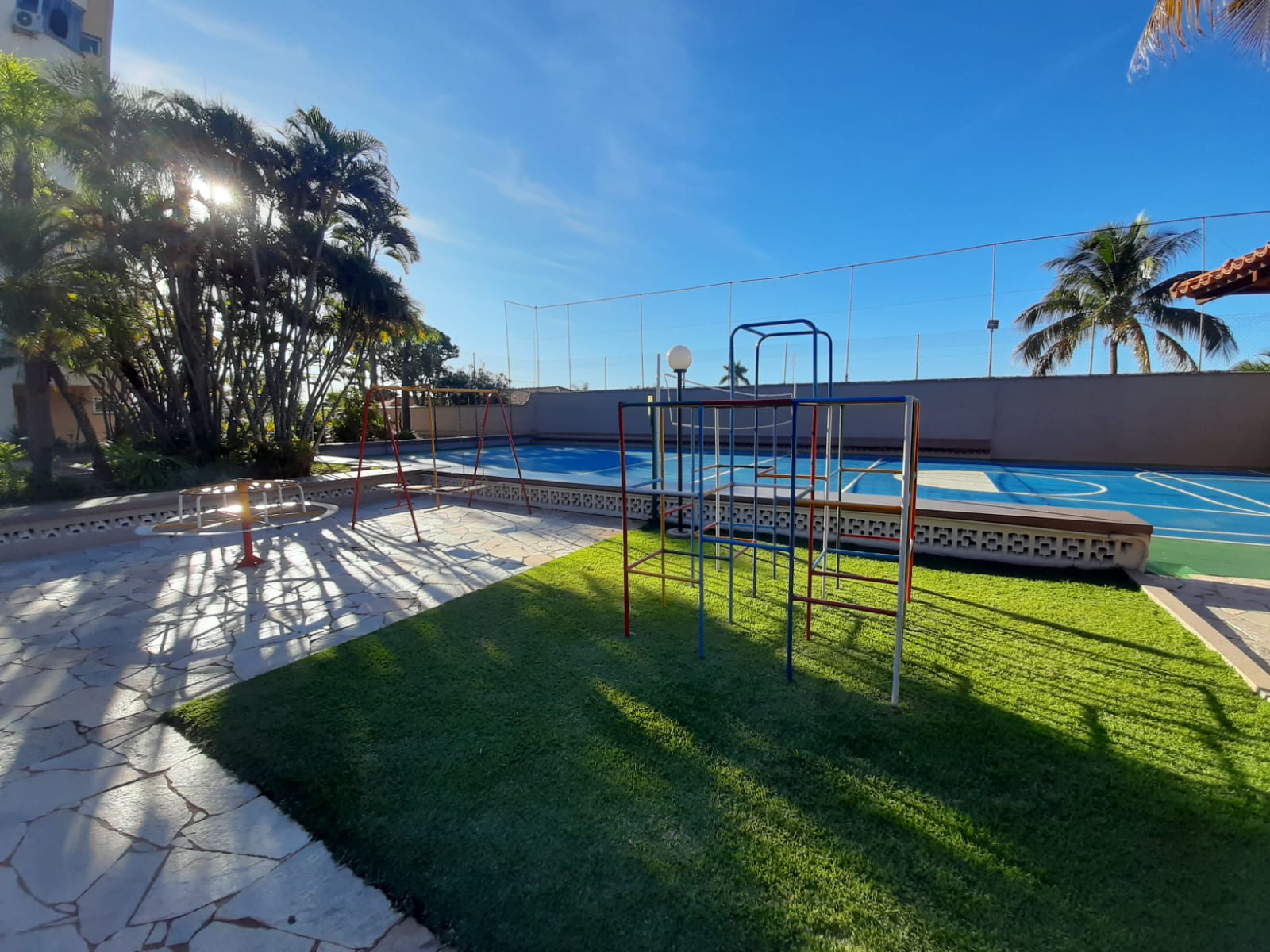 O Edificio conta com área de lazer completa, salão de festa, sala de estar, quadra de esportes, playground infantil, quiosque com churrasqueira, piscina. Portaria com vigilante 24hs.