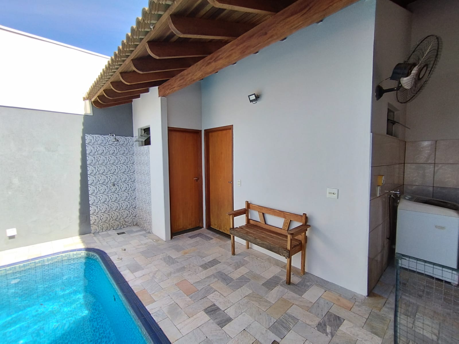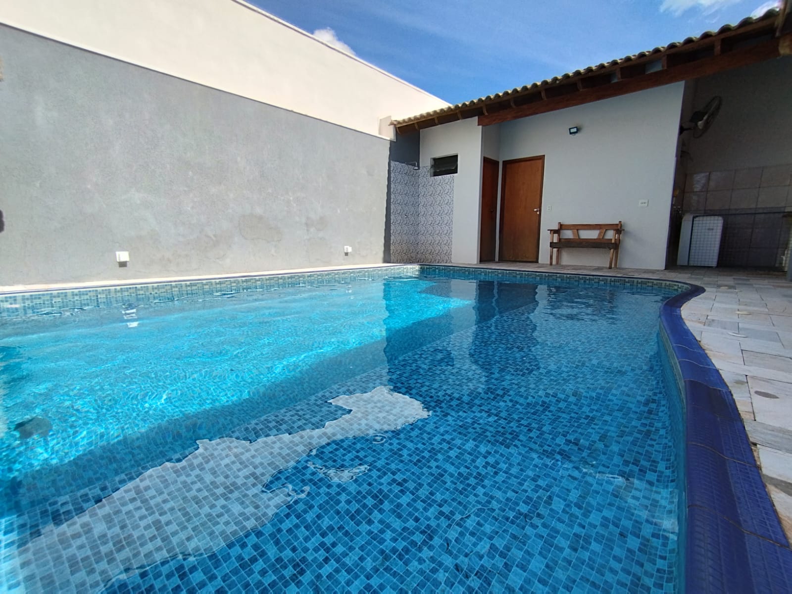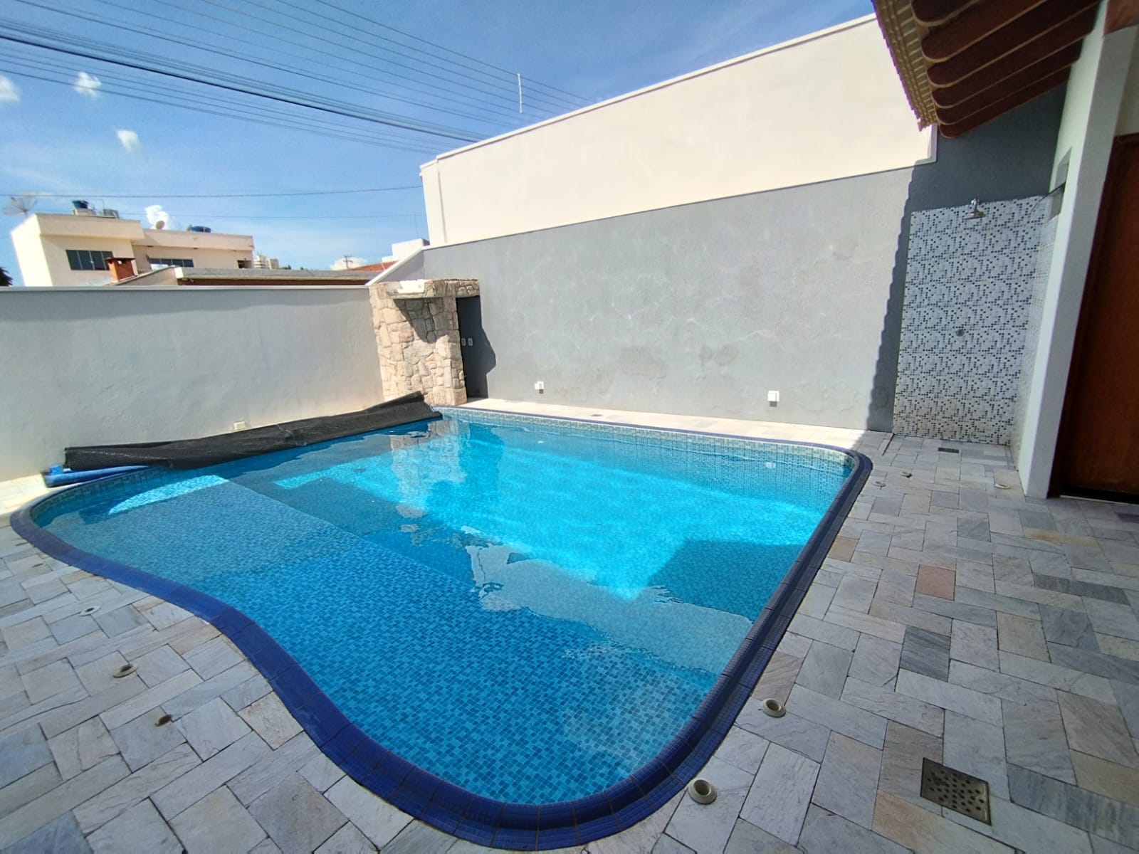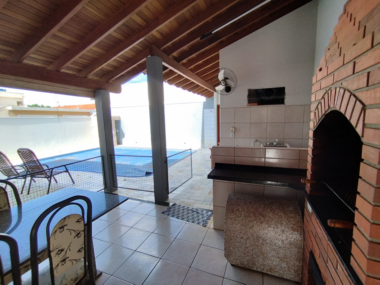 Imóvel em excelente localização, com 03 dormitórios, banheiro social, sala, copa, cozinha planejada, área de churrasco, lavanderia, banheiro externo, despensa, quintal, piscina com praia e cascata, garagem.