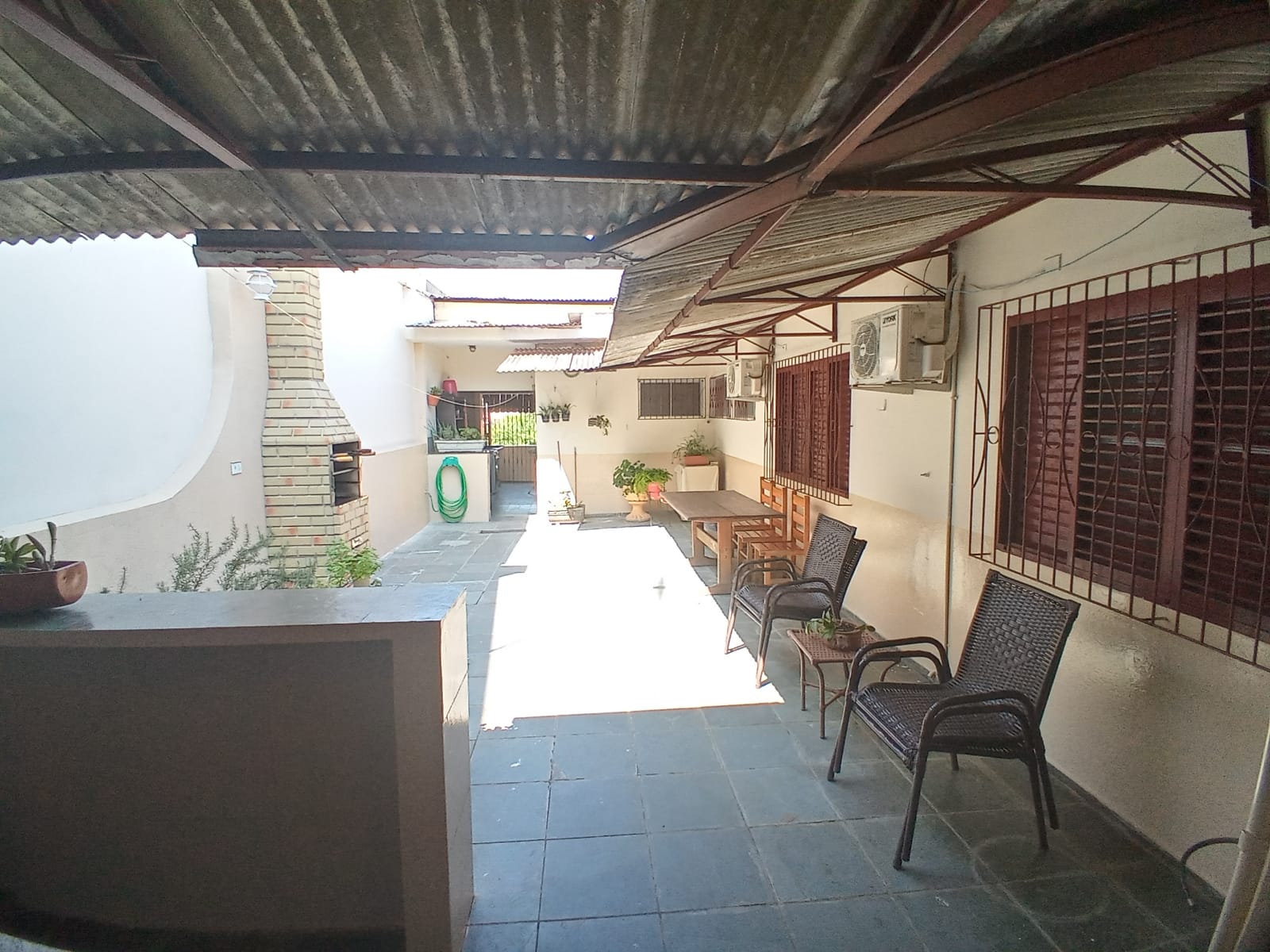 Imóvel residencial contendo 03 dormitórios, sendo 01 suíte com armários embutidos, banheiro social, sala de visita ampla, sala de Tv, copa, cozinha com moveis planejados, despensa com prateleiras, 02 áreas de de lazer com churrasqueira, sendo uma no piso térreo e outra no piso superior, área de serviço, quarto de despejo com prateleiras, banheiro externo, quarto de despejo, banheiro social, quinta e garagem para 02 carros com portão eletrônico.