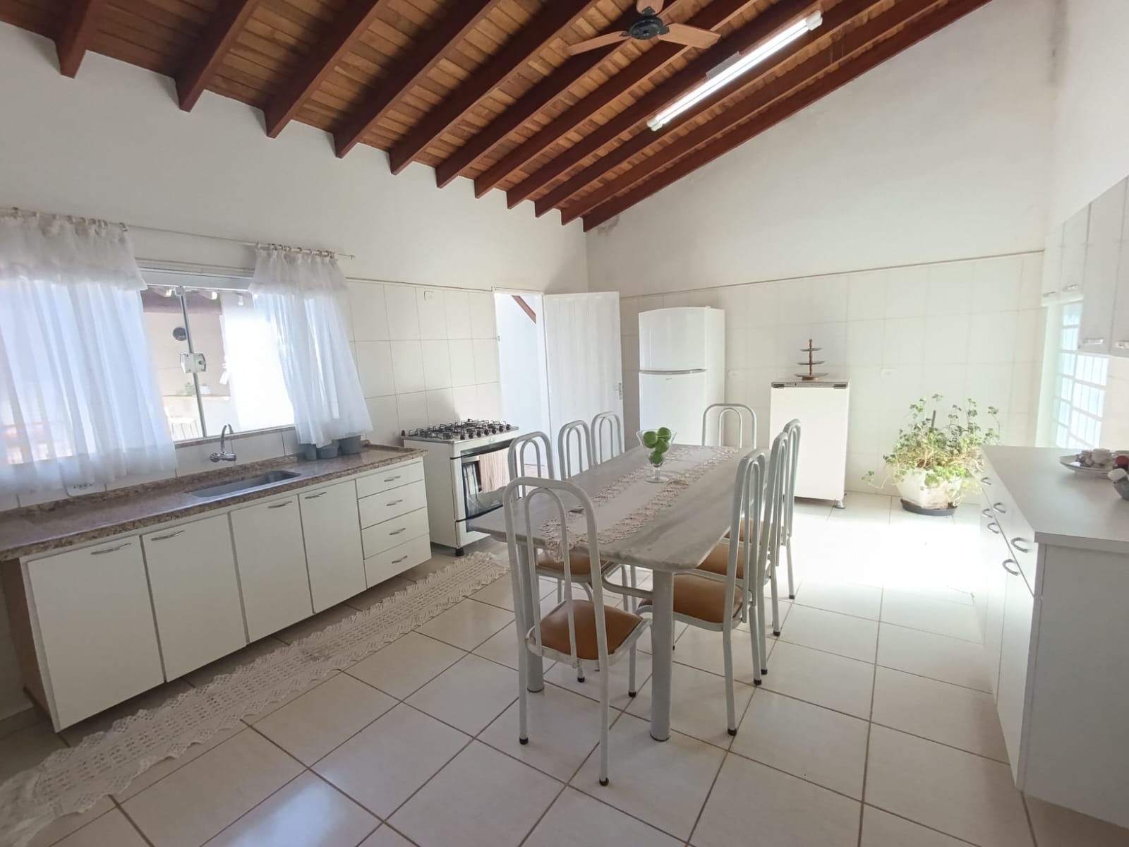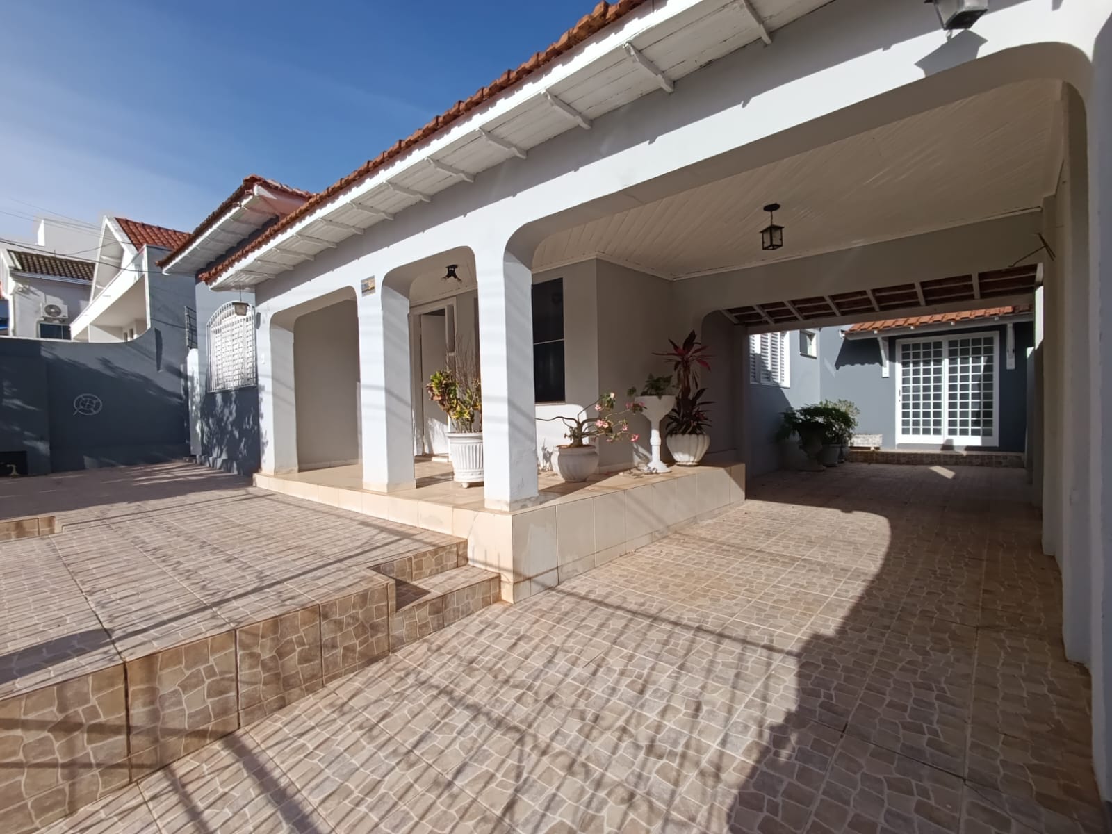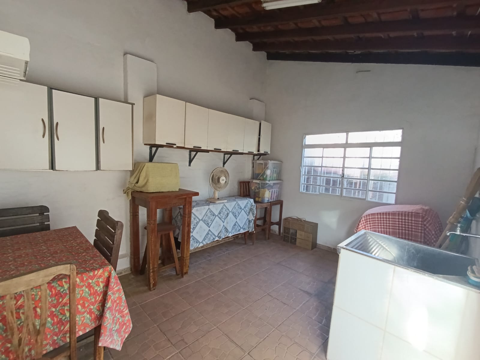 Na área externa ladrilhada , possui varanda com churrasqueira, banheiro e lavanderia.