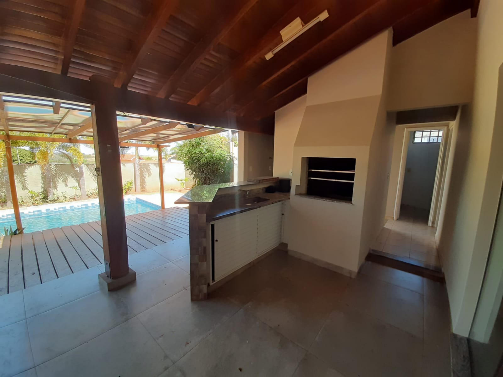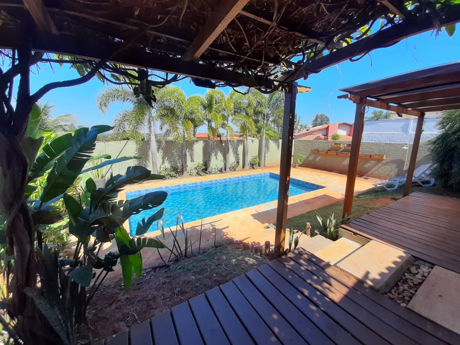 Na área externa, você encontrará um espaço ideal para receber amigos e familiares, com churrasqueira, quintal amplo e piscina. Há ainda área de serviço com espaço reservado para secagem, quarto de despejo com prateleiras de aço, banheiro externo e garagem coberta para 02 veículos.