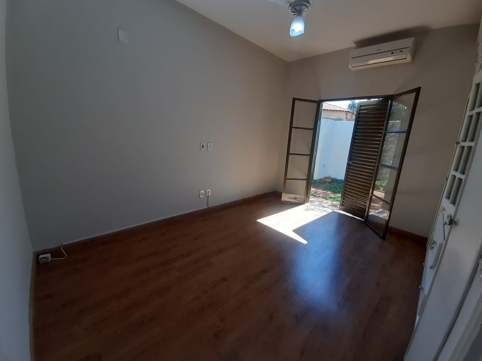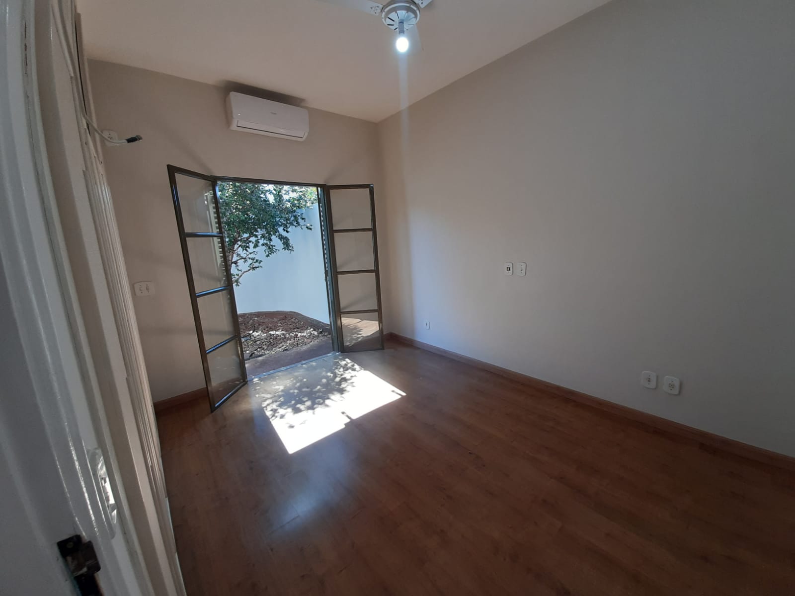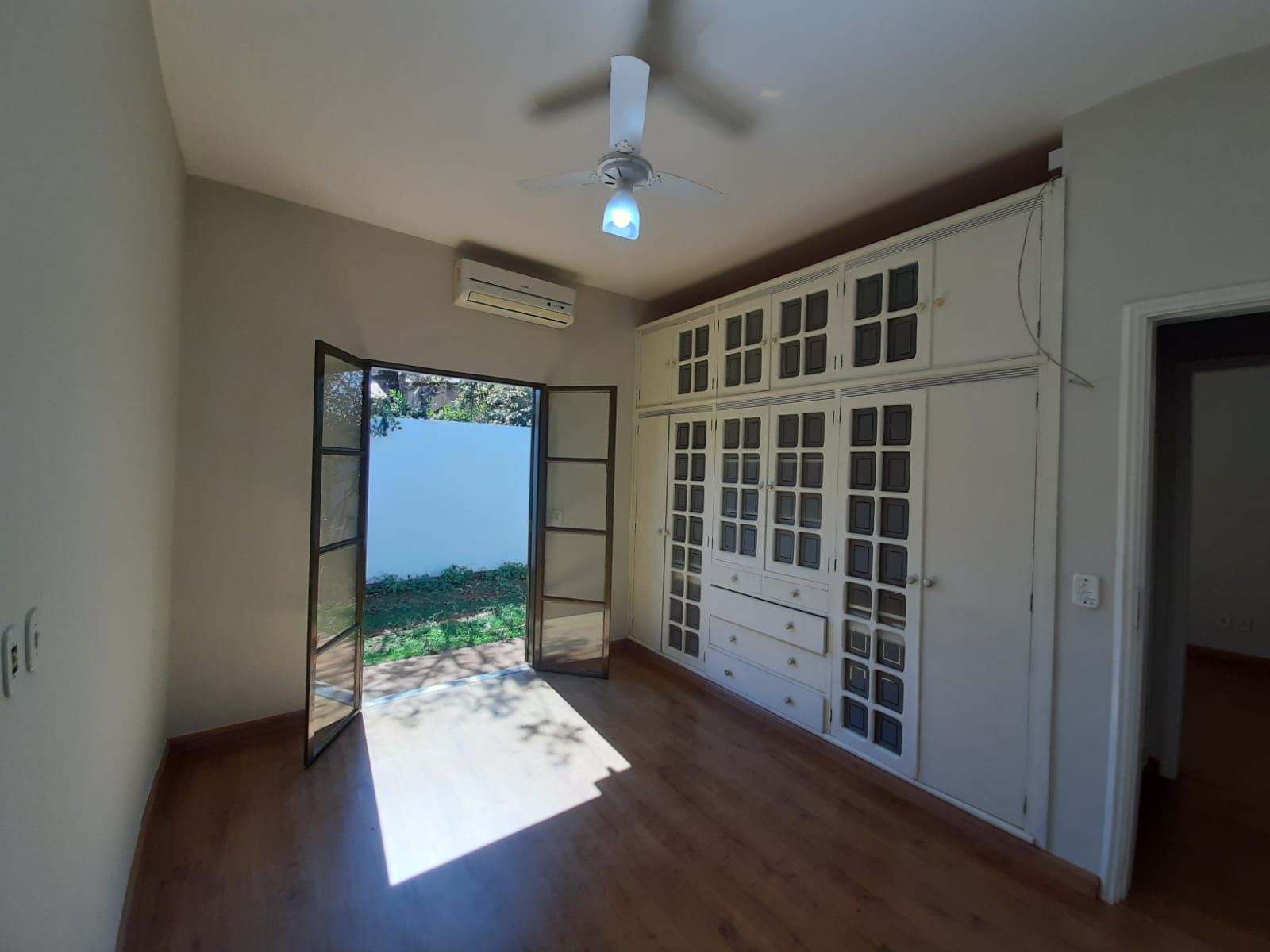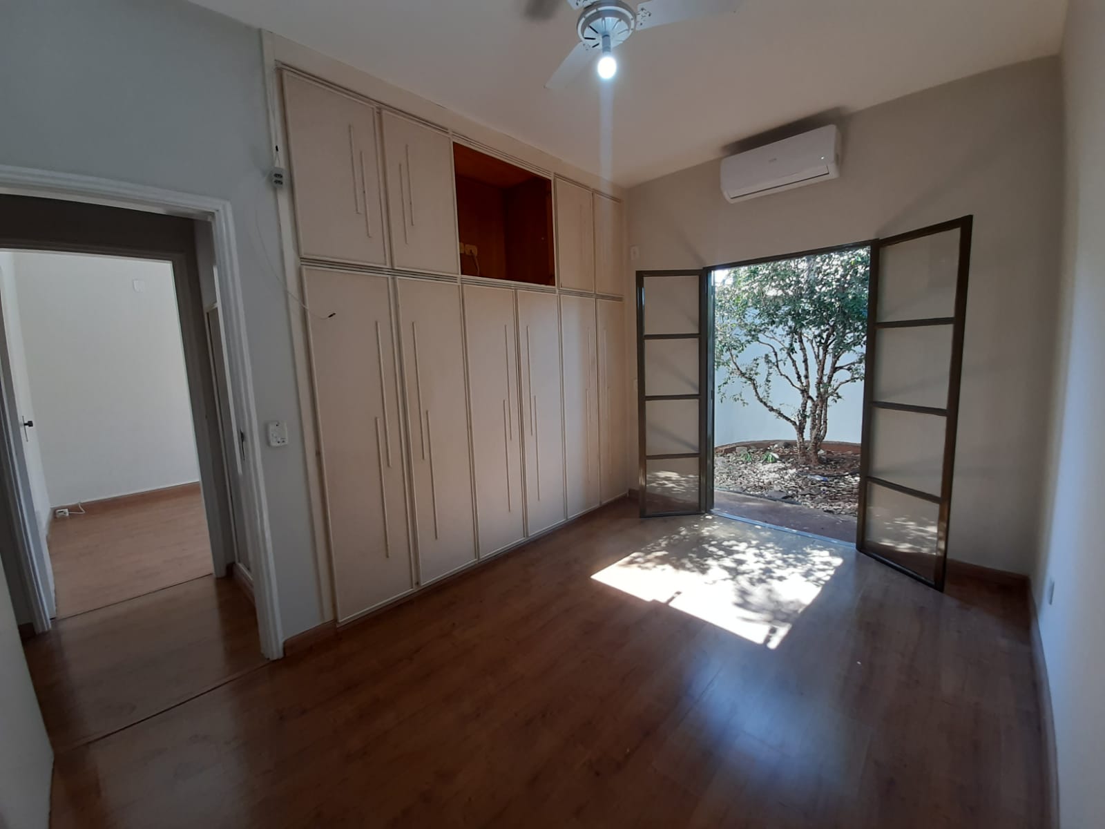 Dormitório 2: com guarda-roupa embutido, ar-condicionado e porta-balcão com acesso a um jardim reservado;