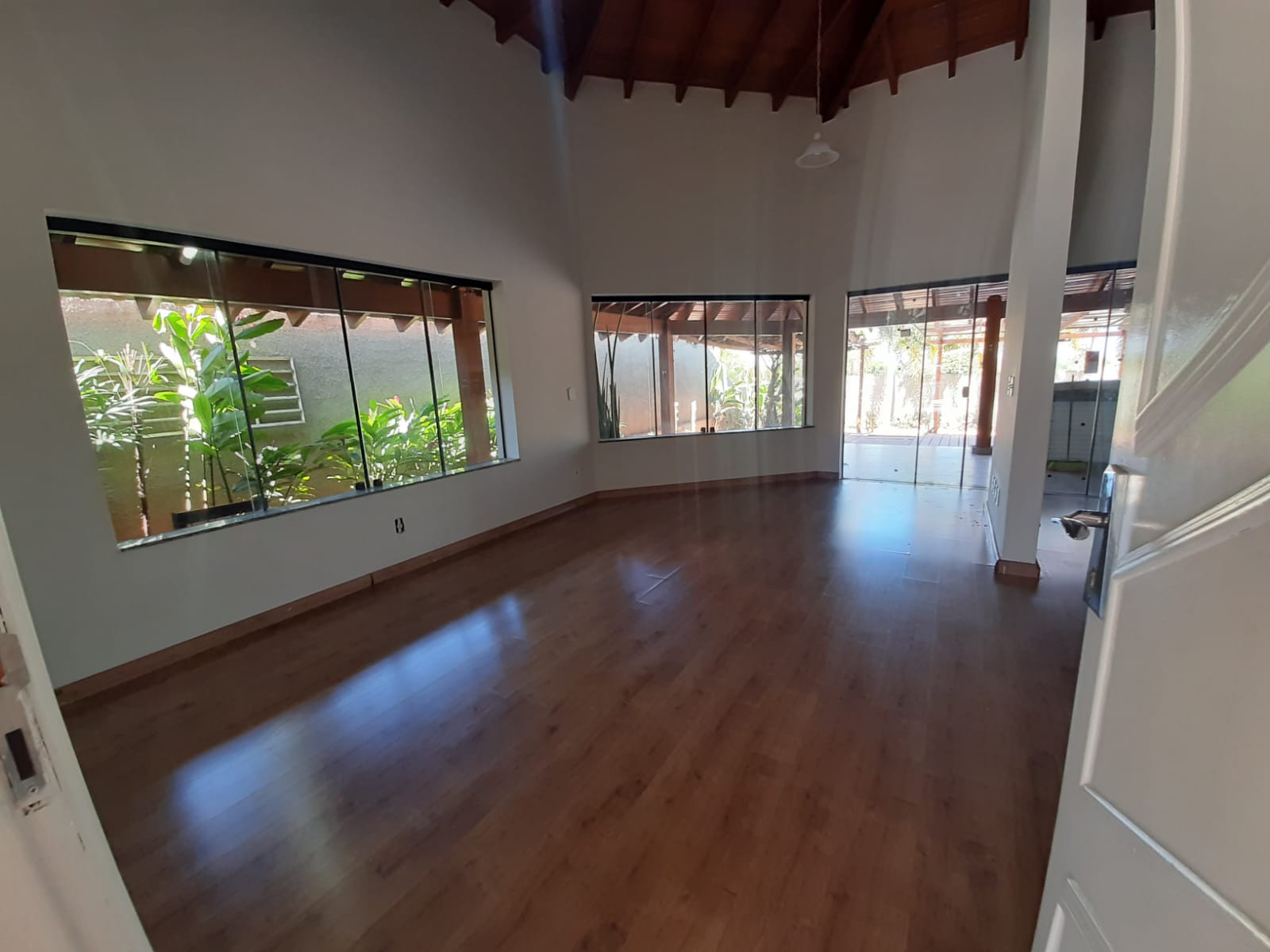 A área social é marcada por uma ampla sala e copa com pé-direito alto, proporcionando excelente iluminação e sensação de amplitude. A cozinha, totalmente planejada, garante praticidade.